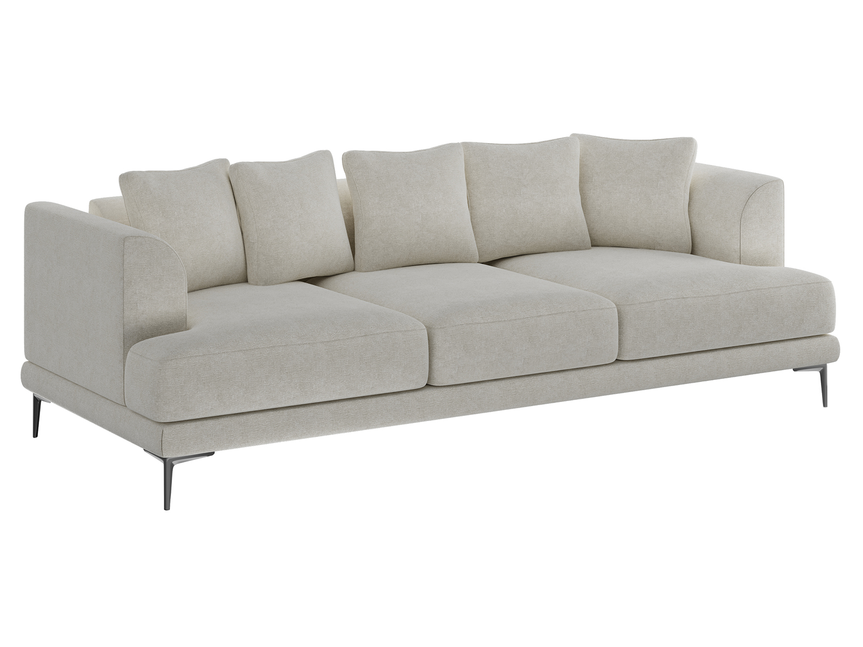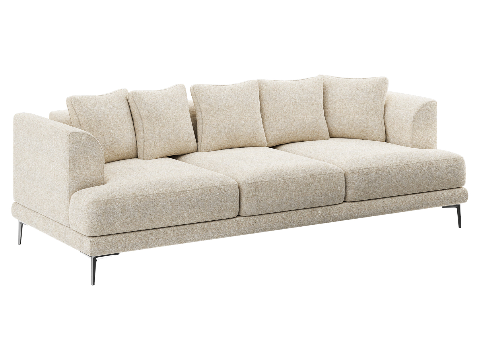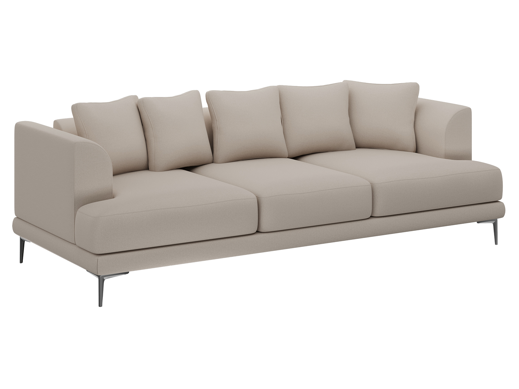 Плавный силуэт, мягкая обивка и высокие ножки создают неповторимый облик модели. Со всех сторон используется лицевая ткань, а значит, диван можно установить спинкой на виду. Скругленные подлокотники и мягкие подушки позволяют комфортно расположиться перед телевизором или во время встреч с друзьями. Диван достаточно просторный, и при необходимости выполнит роль гостевого спального места.