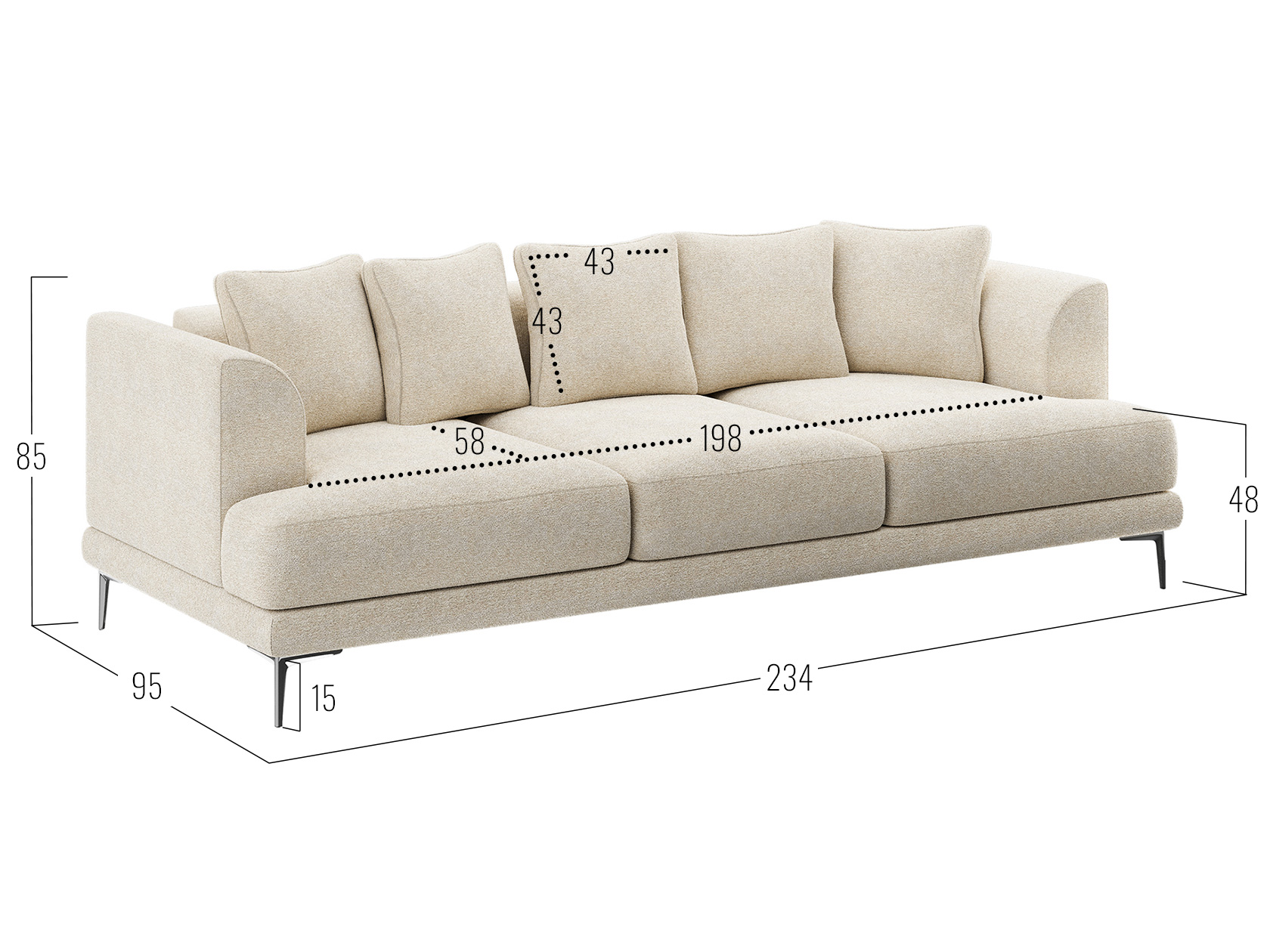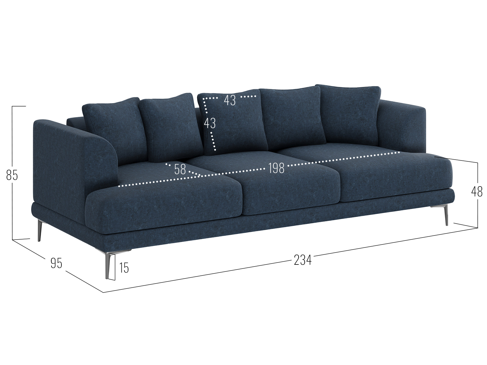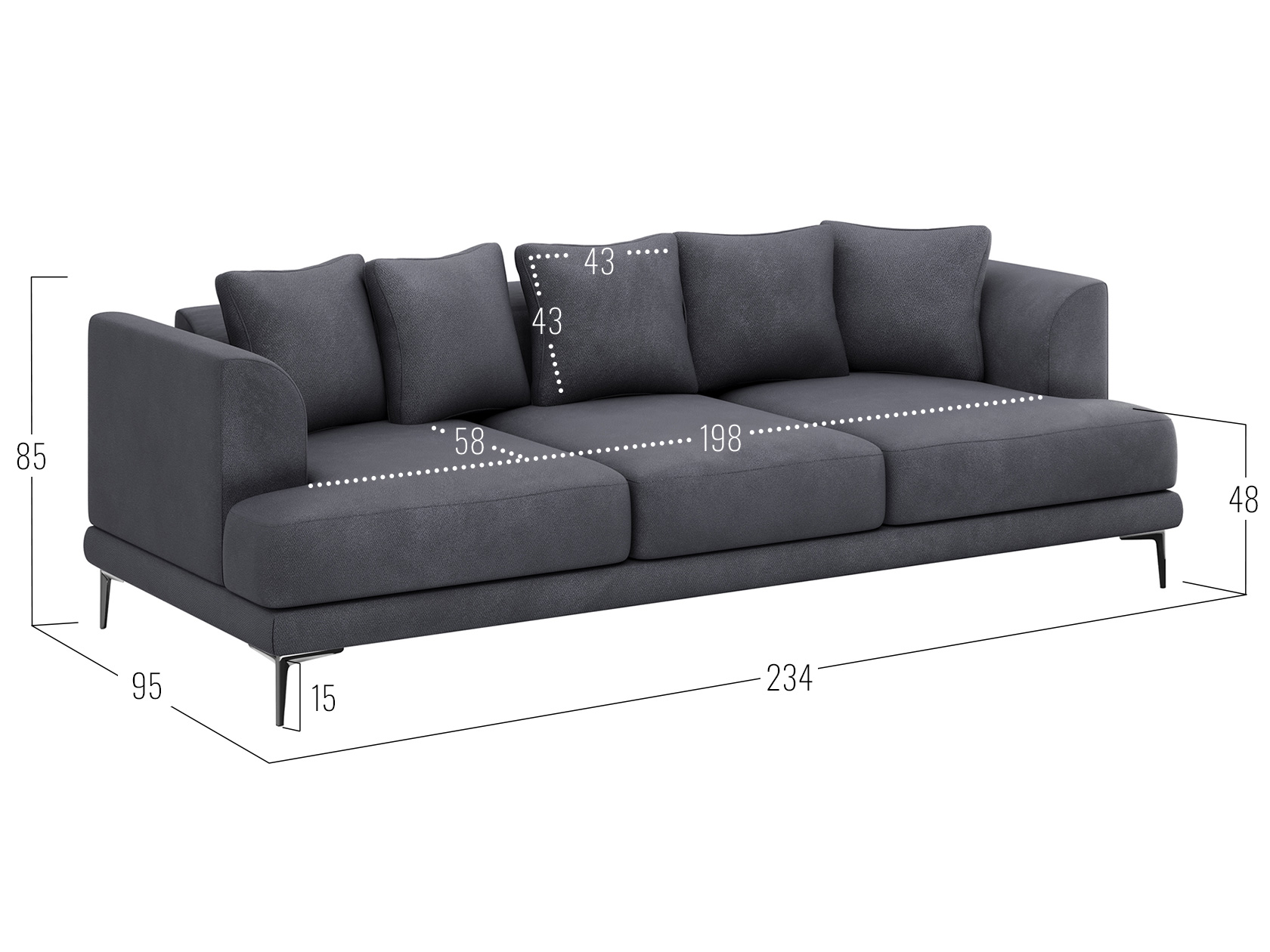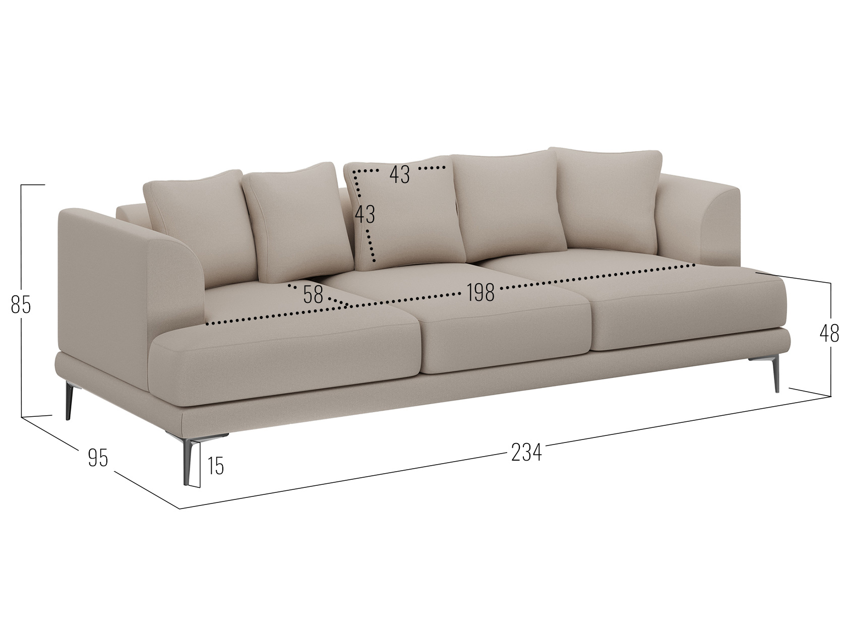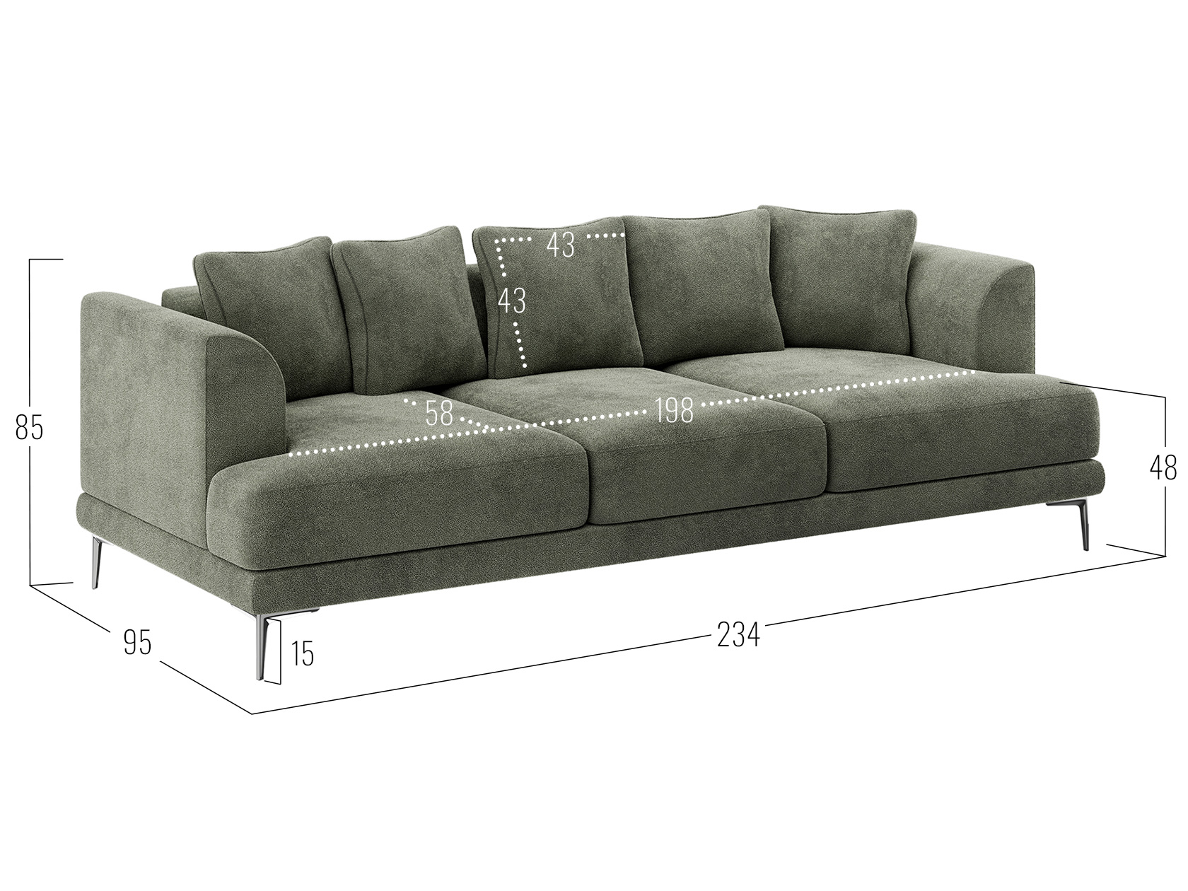 Посадочное место без подушек (ШхГ): 198 х 77 см.